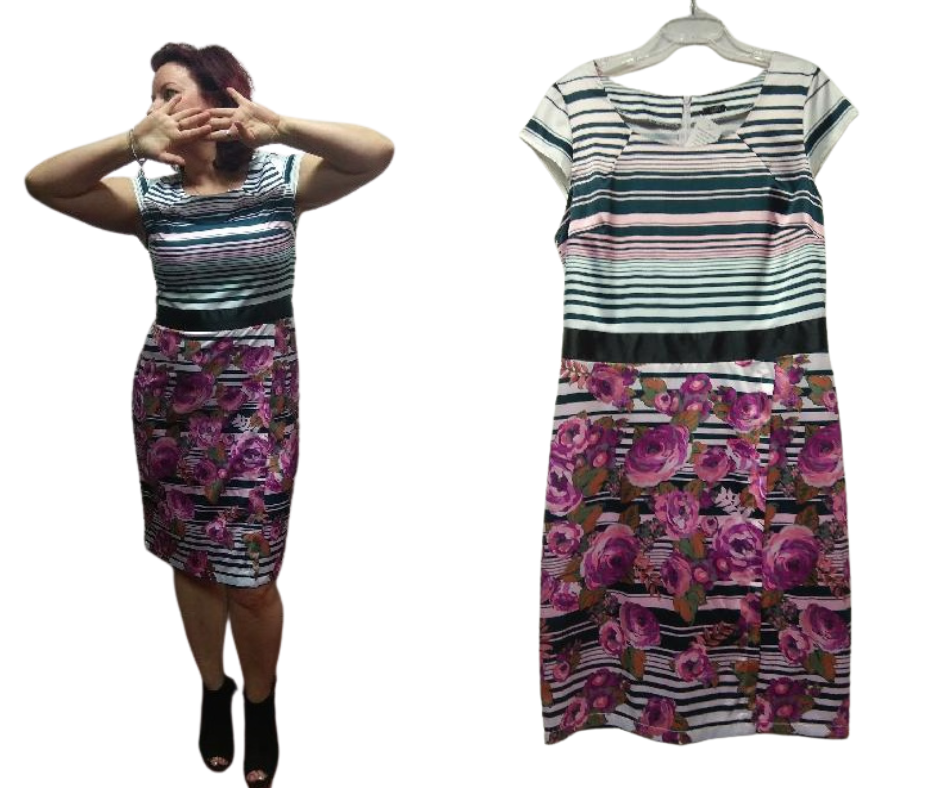 Pouzdrové šaty FM 254 květinovo-proužkové