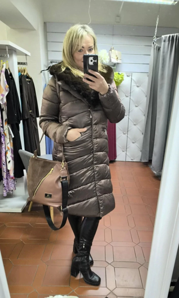 Dámská prošívaná bunda/vesta hnědá s kovovým efektem | Bellaboutique