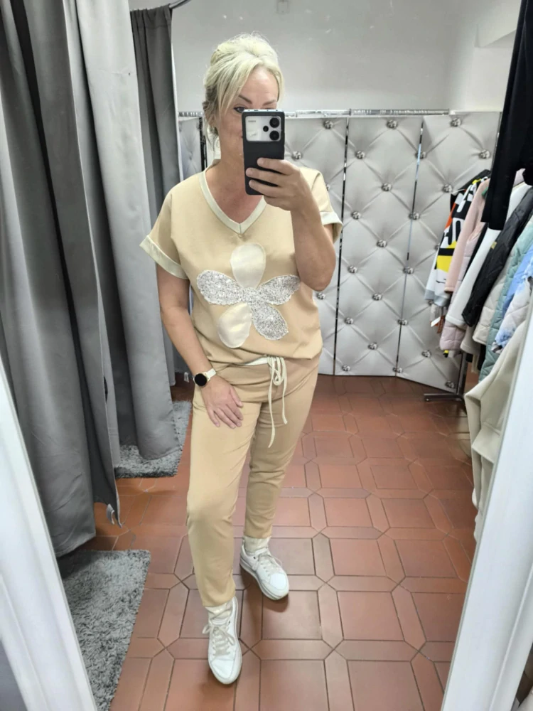 Dámská stylová souprava triko+kalhoty camel