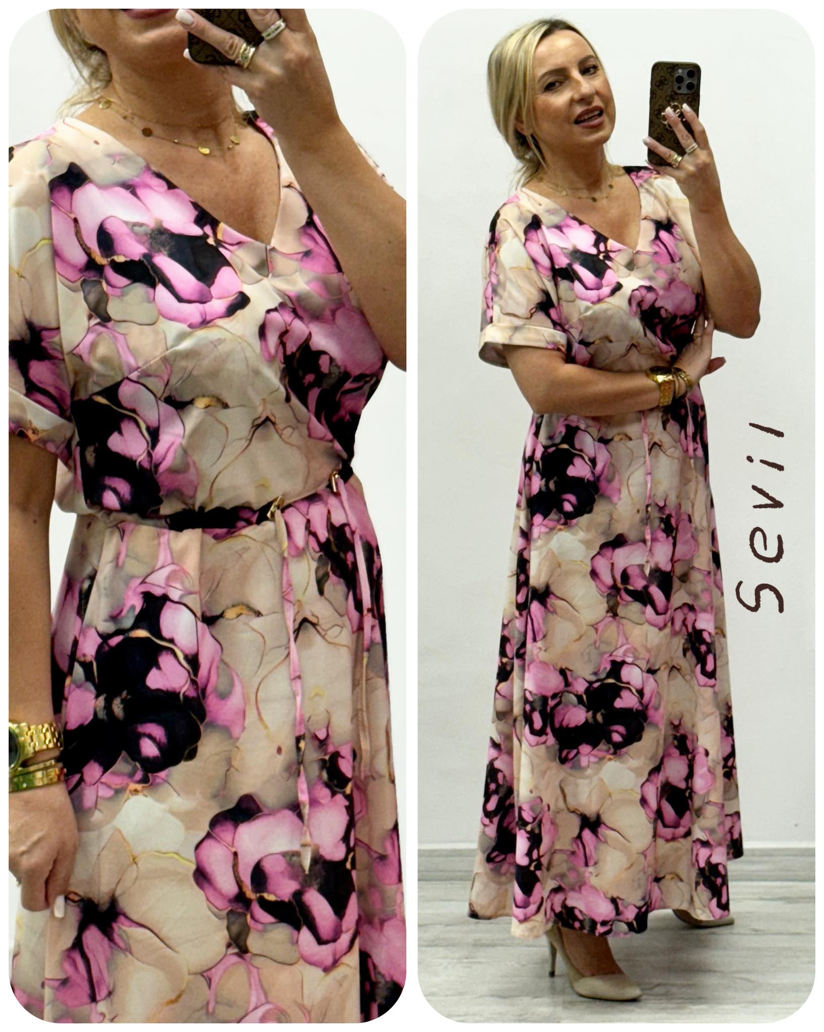 Dlouhé letní šaty SEVIL béžovorůžové