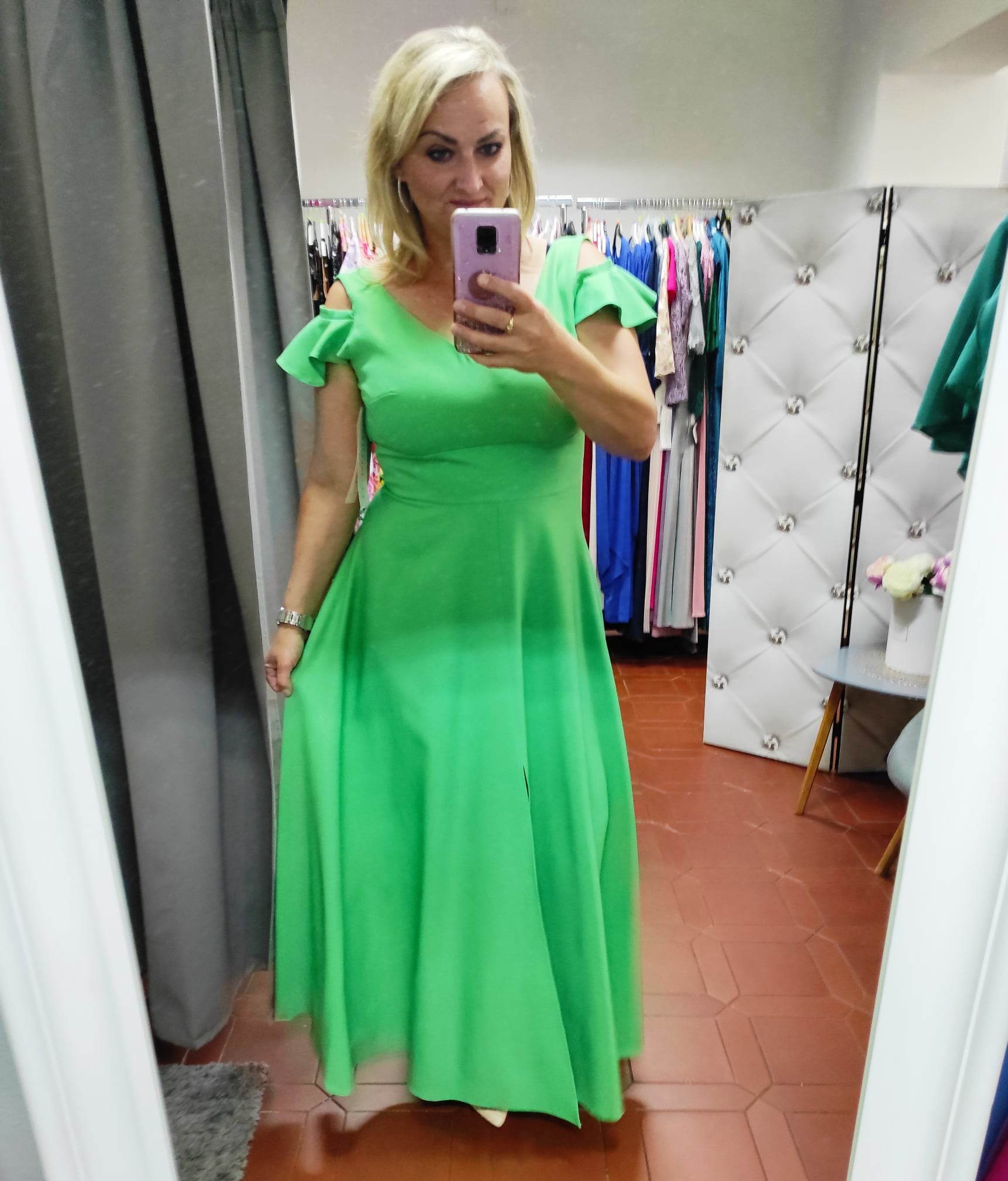 dlouhé zelené šaty na plesy, na svatby