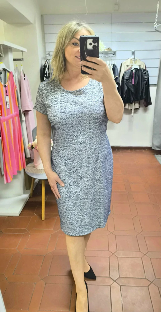 Stylové a nadčasové pouzdrové šaty, které perfektně podtrhnou ženskou siluetu a zároveň nabídnou maximální pohodlí. Díky jemně strukturovanému materiálu s efektem melíru působí luxusně a zajímavě i bez výrazných vzorů. Ideální volba do práce, na schůzky i společenské příležitosti jako svatba, oslava...