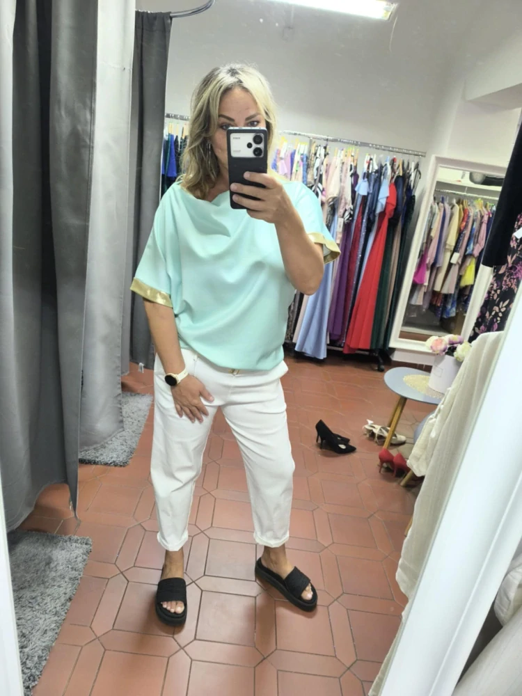Stylové triko s lodičkovým výstřihem mentol | Bellaboutique