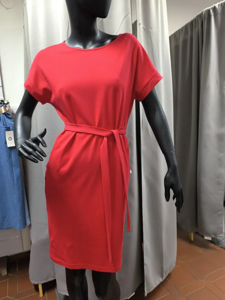 dámské úpletové šaty červené s kapsami krátký rukáv pásek ze stejného materiálu (šaty jsou bez poutek, tzn. pásek nemusíte mít) šaty jsou elastické 90% bavlna, 10% elastan TABULKA VELIKOSTÍ VELIKOST 38 40 42 46 48 obvod prsou 84-88 cm 88-92 cm 92-98 cmf 104-108 cm 108-112 cm obvod pasu 80-8... celý popis